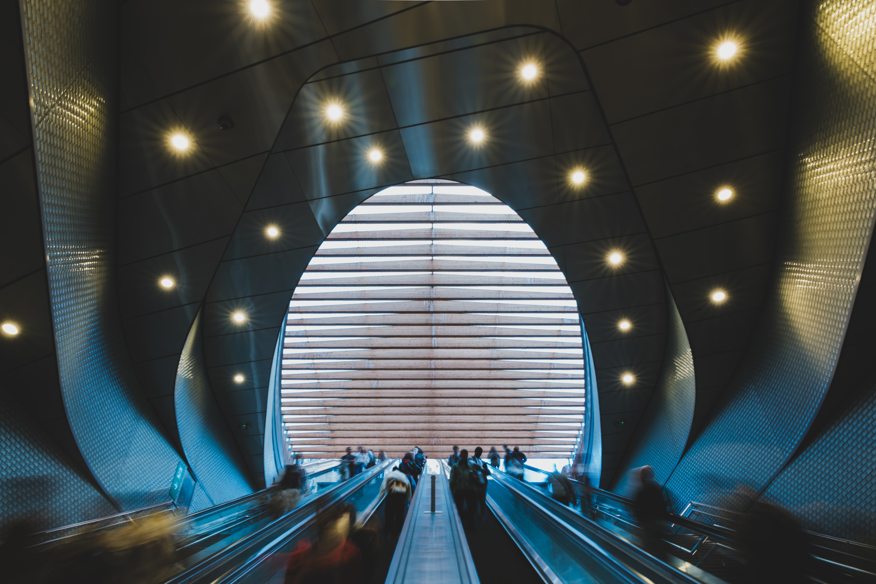 | Description | Multiple mechanical stairs going up to an erg shape ceiling | |