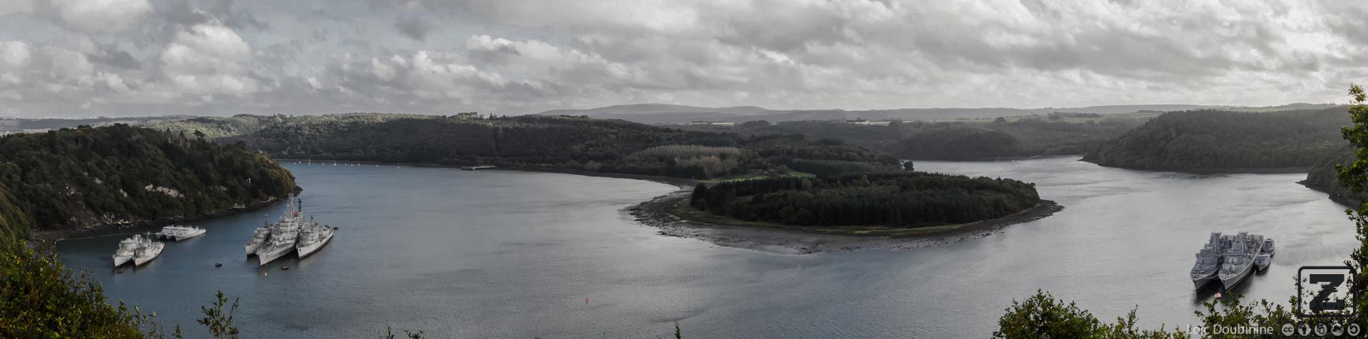 DescriptionDe réserve de navires en bon état, le site devient cimetière des navires désarmés de la Marine nationale. Comme leurs confrères qui servaient de brise-lames devant le château de Brest ou servent encore devant l'école navale de Lanvéoc-Poulmic, ils attendent ici le chantier de démolition, l'« océanisation » en haute mer pour des exercices de tirs de la Marine nationale n'étant plus autorisé désormais. Le porte-avions Clemenceau n’a pas eu l’honneur de rejoindre Landévennec, malgré les souhaits de son maire. Le passage du banc du Capelan semble avoir découragé les pilotes. En revanche, après avoir été quasiment vidé de tous ses occupants, le cimetière accueille deux des trois anciens brise-lames qui abritaient le futur « port du Château » de Brest, l'Enseigne de Vaisseau Henry et le Détroyat, arrivé début 2006, le cimetière accueille à nouveau en août 2006 deux brise-lames qui abritaient l'école navale de Lanvéoc, les escorteurs d'escadre ASM Duperré et la Galissonnière. Le croiseur Colbert est embossé entre ces deux navires, il est arrivé en provenance de Bordeaux en juin 2007. En avril 2010 l'Ernest Brown, un ancien remorqueur quitte les lieux, pour être déconstruit à Brest après plus de dix ans de mouillage. En octobre 2010, le Kometa, hydroptère de construction soviétique, le Jaguar et le Kevrenn trois navires des Vedettes Armoricaines qui assurait la desserte d’Ouessant en saison et de Jersey quittent les lieux pour être déconstruits à Brest par Guyot Environnement, ils occupaient les méandres depuis plus de dix ans. Le Tourville rejoint le cimetière le 10 décembre 2012, il est désormais embossée, en amont du groupe de navires constitué notamment par le Colbert, l'Enseigne de vaisseau Henry, le Duperré, la Galissonnière et le Détroyat. En mai 2013, l'Ex barge Rascasse de la Direction générale de l'Armement, est remorqué jusqu'au Havre pour être démantelé par la société Gardet et de Bezenac, suite au plan de déconstruction de petites unités lancé par la Marine Nationale. Le 25 septembre 2013, le De Grasse rejoint le cimetière, il est désormais embossée avec le Tourville à sa bâbord. Cela porte à 13, le nombres de navires en attente de déconstructions.