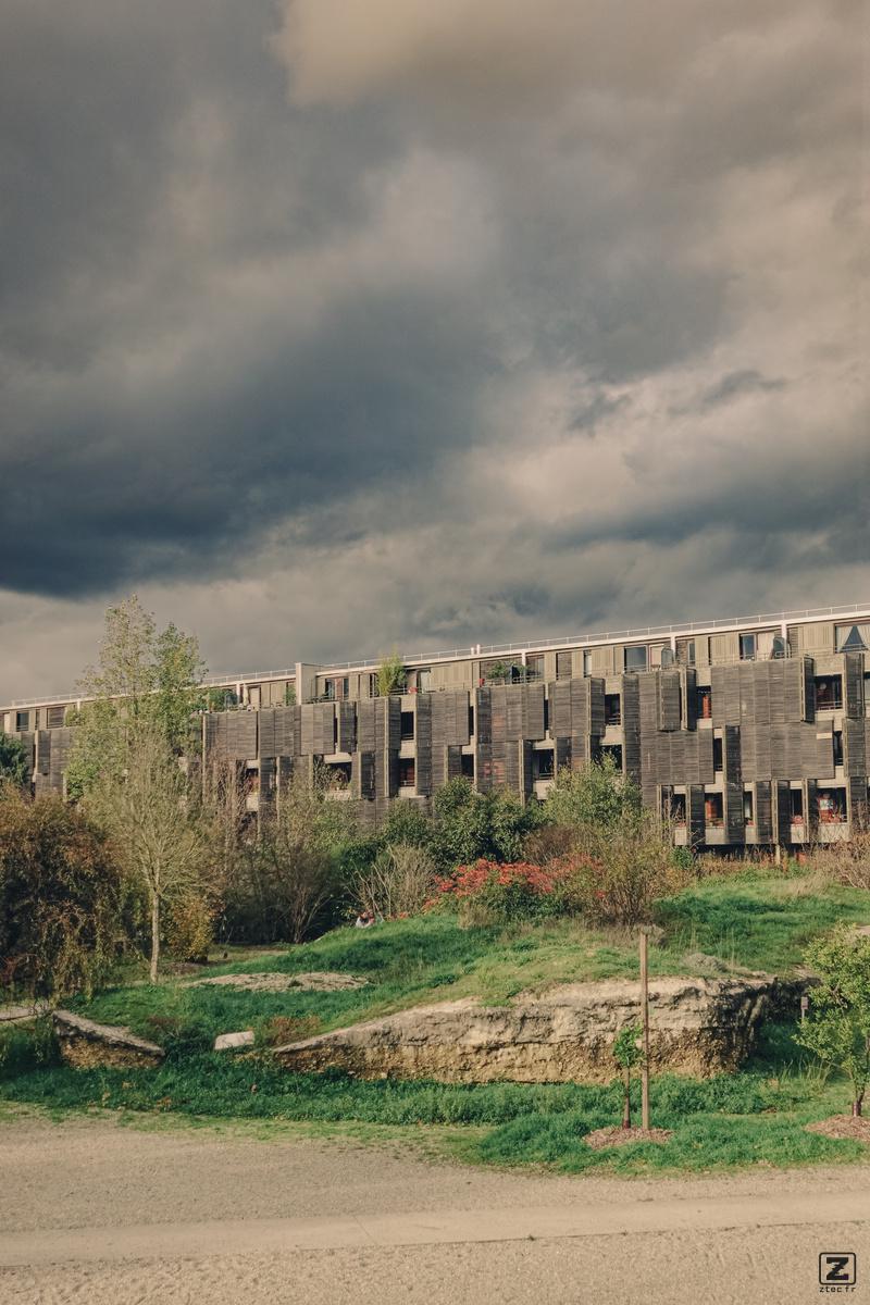 | Description | Wood building in a park. The picture in in 3 layer. First ground with the park. Second, the building with it's facade in wood. Then the sky, a bit dramatic. | |