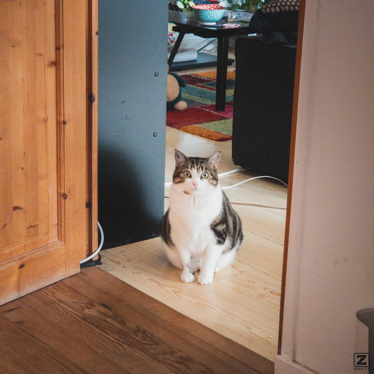| Description | A cat siting in the middle of the frame looking at the camera | |