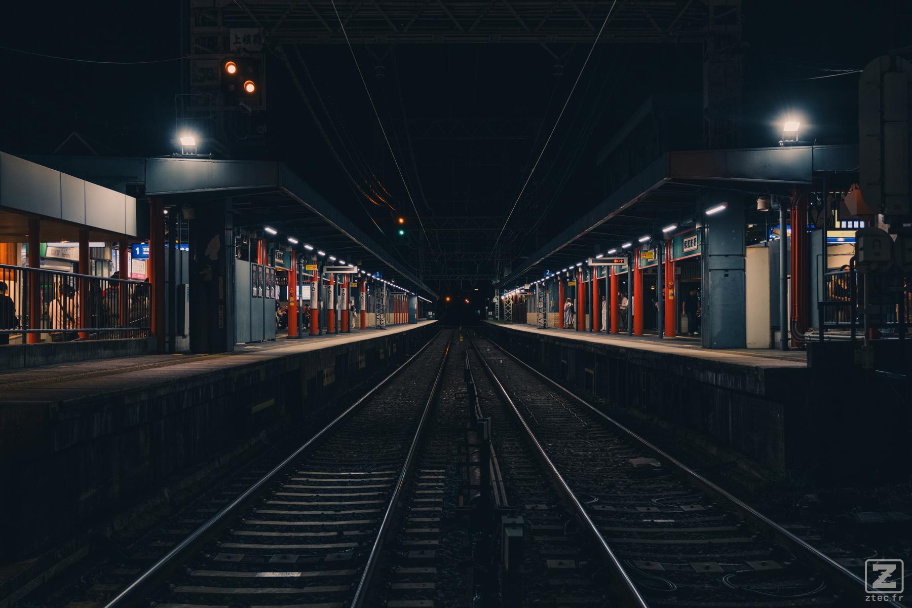| Description | A train station taken from the side, in the middle of the rails | |