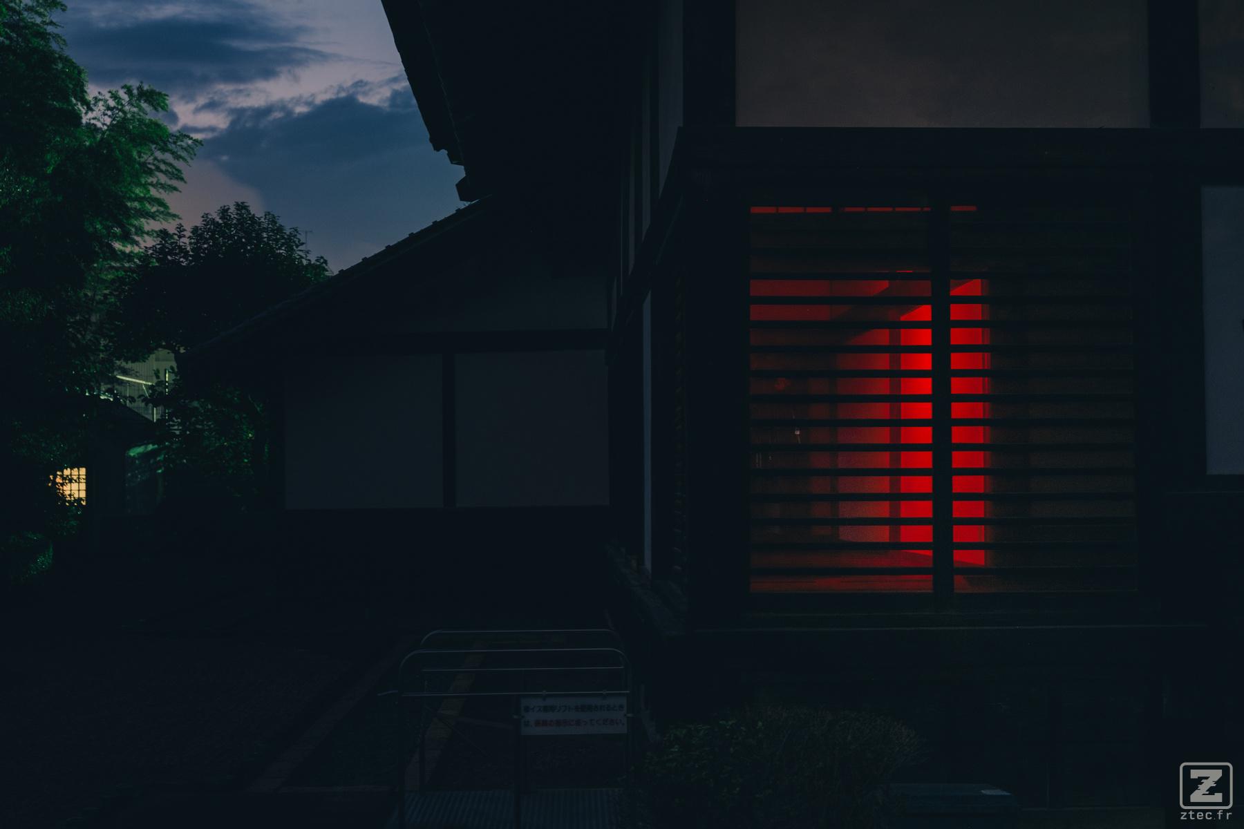 | Description | A house taken in the dark. A red glow come from the inside | |